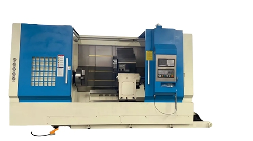 斜床身數控車床是一種高精度、高能效的自動化加工設備,其床身導軌平面與地平面呈傾斜角度(如3...